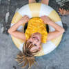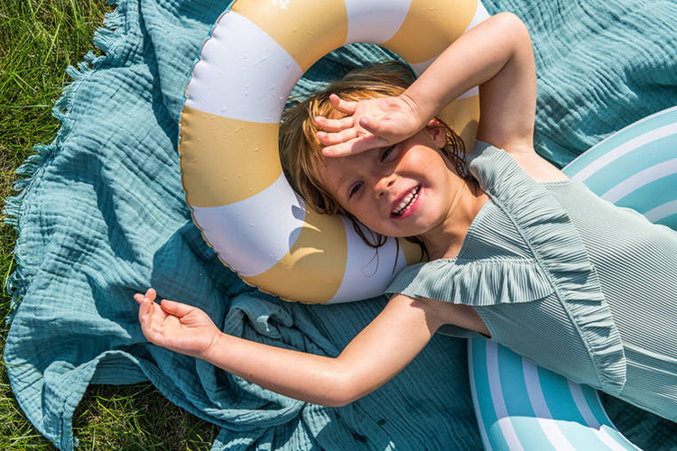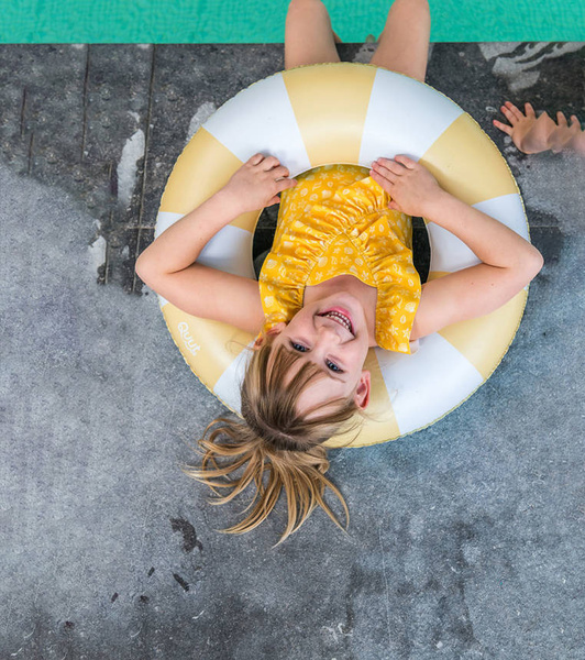 Średnie kółko do pływania belgijskiej marki Quut to praktyczne rozwiązanie, zapewniające dzieciom bezpieczną wodną rozrywkę, na plaży, w basenie, w ogrodzie lub na tarasie. Przeznaczone jest dla dzieci od 3. do ok. 8. roku życia (UWAGA: wyłącznie pod opieką dorosłych!). Wykonane z bardzo wytrzymałego winylu, zachwyca niebanalnym designem i kolorystyką. Ma piękne, intensywne kolory: dół jest jasnoniebieski, a góra – w szerokie żółto-białe pasy. Kółko jest idealne do oswajania dziecka z wodą, wstępu do nauki pływania czy relaksu na świeżym powietrzu. Zachęca do aktywności outdoorowych, zdobywania nowych doświadczeń i umiejętności.