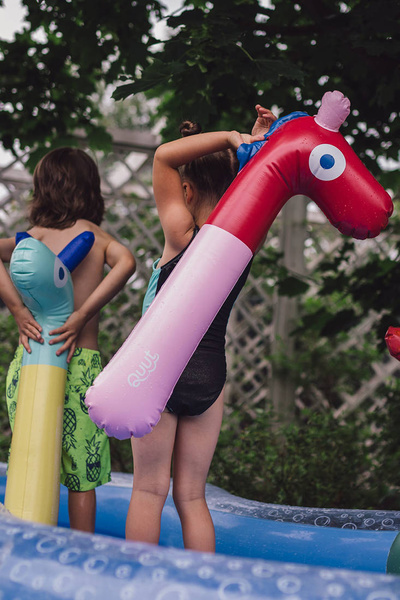 Kolekcja zabawek dmuchanych marki Quut pozwala na stworzenie dla dziecka bezpiecznej przestrzeni do wodnych zabaw na świeżym powietrzu. Intensywne, piękne kolory i niebanalne grafiki dodatkowo zachęcają do eksploatacji i oswajają z nowym środowiskiem.