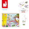 Zestaw kreatywny do tworzenia biżuterii z motywami astrologicznymi francuskiej marki JANOD pozwoli stworzyć w sumie aż 13 sztuk biżuterii w stylu pop-art: 2 naszyjniki i 11 bransoletek. W jego skład wchodzi: 2 jadeitowe sznureczki (jasnoniebieski i fuksjowy), cienka biała bawełniana nitka, 2 igły, drewniane mini-krosno tkackie oraz po 500 drobnych koralików w 10 kolorach (białym, czarnym, żółtym, jasnoróżowym, jasno- i ciemnozielonym, niebieskim, fioletowym, pomarańczowym i czerwonym). W kilka chwil Twoje dziecko może stać się kreatywnym jubilerem! Projektowanie i tworzenie biżuterii oraz koralikowych plecionek (krosno może posłużyć także do tworzenia własnych prac) to długie godziny angażującej i jednocześnie uspokajającej, wyciszającej zabawy, a po powstałe dzieła mogą jeszcze długo służyć jako ozdoby lub podarunki dla bliskich. Do zestawu dołączona jest szczegółowa instrukcja jak wykonać poszczególne ozdoby.