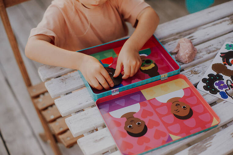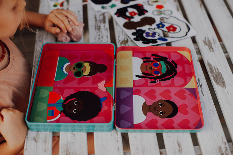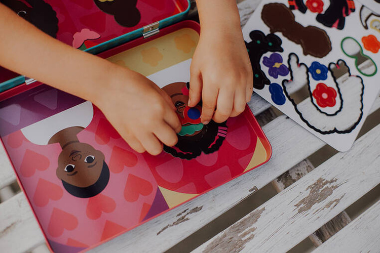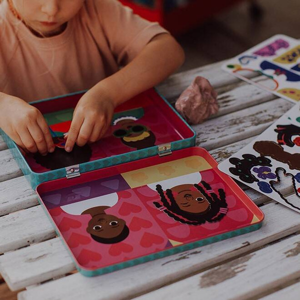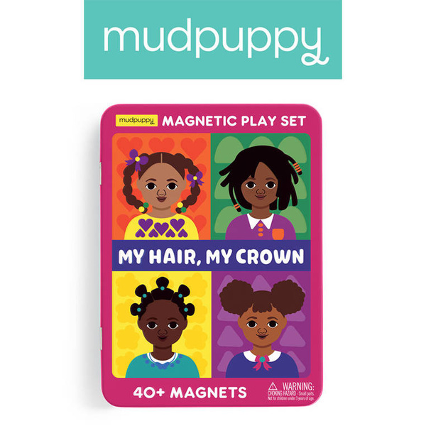 Zestaw magnesów do tworzenia postaci Moje włosy, moja korona amerykańskiej marki MUDPUPPY to wyjątkowo kreatywna zabawka dla dzieci od 4. roku życia. Na dwóch magnetycznych tłach, które są jednocześnie wewnętrzną stroną okładki, znajdują się cztery postacie-popiersia, którym można dobierać kolorowe stroje i niebanalne fryzury, np. afro, dredy czy warkoczyki. Można na nich umieszczać wybrane magnesy (ponad 40 elementów) – oprócz wspomnianych są to także ozdoby do włosów czy okulary przeciwsłoneczne – tworząc wiele różnych stylizacji. Autorką ilustracji jest amerykańska artystka Tabitha Brown, fascynatka kolorów i ludzi. Zabawka ma poręczny format, sprawdza się w domu i w podróży. Zapakowana jest w estetyczne, metalowe pudełko. Doskonale nadaje się na prezent.