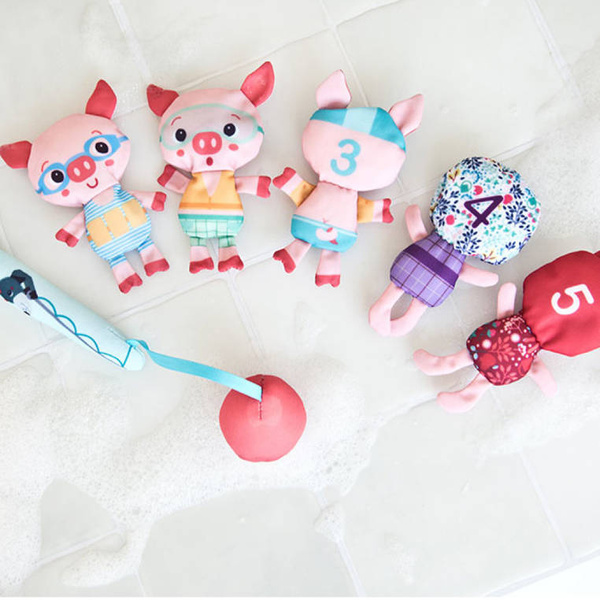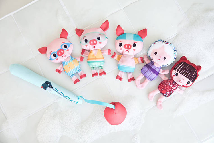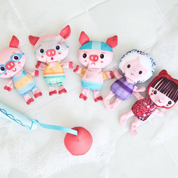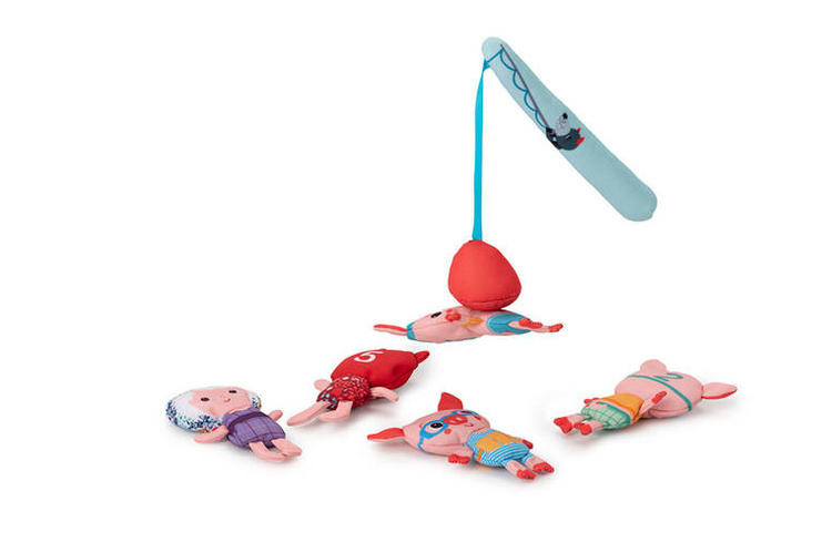 Zestaw do wędkowania z kolekcji Wilk Louis belgijskiej marki Lilliputiens to idealna zabawka do kąpieli. Wykonany został z miękkiego, łatwego do czyszczenia i szybkoschnącego materiału. W skład zestawu wchodzi poręczna wędka z magnesem, którą operuje Wilk Louis oraz 5 postaci do złowienia: trzy świnki w kąpielówkach i czepkach, a także Czerwony Kapturek i babcia w strojach kąpielowych. Każda z figurek ma numerek na plecach, dzięki czemu zestaw pomaga dziecku w nauce liczenia. Wszystkie elementy unoszą się na wodzie. Zabawka jest perfekcyjnie wykończona, z dbałością o każdy szczegół i w pełni bezpieczna dla dziecka. Rozwija sprawność motoryczną i koordynację ręka-oko.