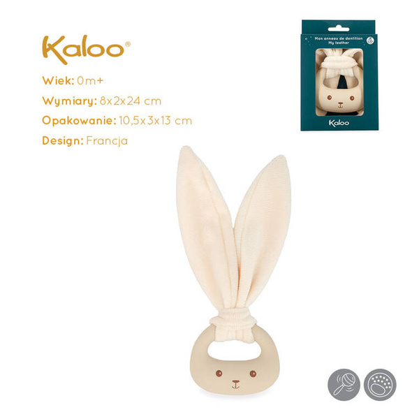 Uroczy gryzak z długimi miękkimi uszami Królik francuskiej marki KALOO to idealna zabawka dla Twojego dziecka, bezpieczna od pierwszych dni życia. Jest piękna i perfekcyjnie wykończona. Ma kolor jasnokremowy, nadrukowany pyszczek i oczy oraz bardzo długie uszka, dodatkowo stymulujące zmysł dotyku. Poręczny uchwyt ułatwia maluszkowi utrzymanie zabawki w małych rączkach. Dodatkowo gryzak jest dwustronny: po jednej stronie gładki, a po drugiej – fakturowany, z wypustkami, które przynoszą ulgę w trudnym okresie ząbkowania. Wykonana została z silikonu, uszka zaś z przyjemnego w dotyku weluru o fakturze sztruksu. Wspiera naukę chwytania i rozwój sensoryczny, a także uspokaja.