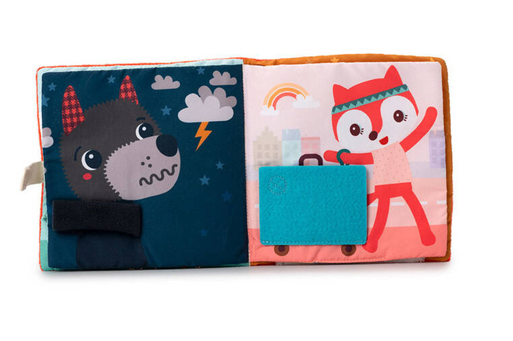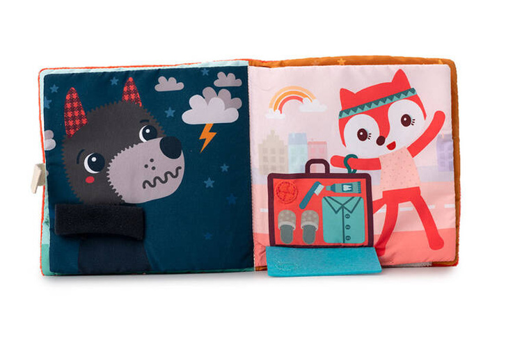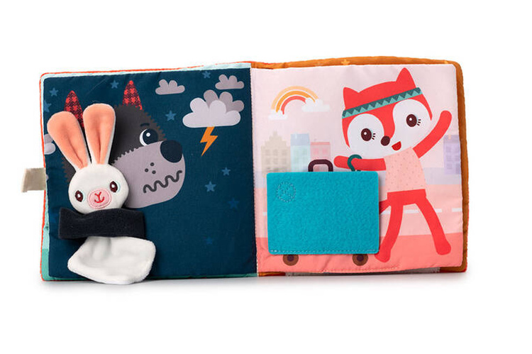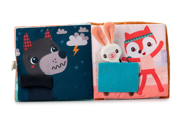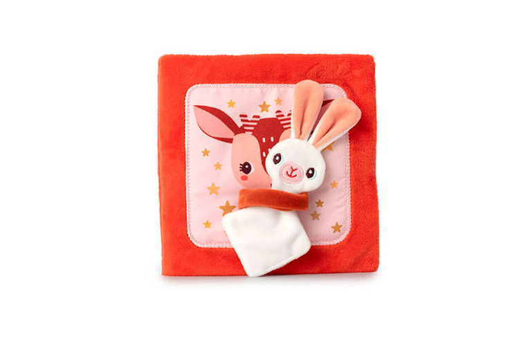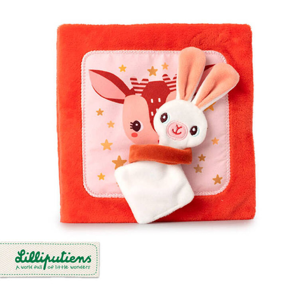 Książeczka aktywizująca „Stella i jej przytulanka” belgijskiej marki Lilliputiens to idealna pierwsza lektura dla maluszka. Na jej okładce znajduje się sarenka Stella, która trzyma w łapkach swój ukochany komforter – króliczka. Na kolejnych stronach można śledzić losy uroczej przytulanki i sytuacje, w których okazuje się pomocna czy niezbędna, np. podczas burzy czy dalekiej wycieczki. Króliczka można przenosić z łapek do łapek, by wesprzeć zaniepokojone zwierzątka. Kolorowe, łatwe do interpretacji obrazki doskonale nadają się do snucia opowieści i zapadają w pamięć. Książeczka jest miękka, wykonana z tkanin o różnych fakturach, zapinana na rzep, perfekcyjnie wykończona i bezpieczna dla dziecka. Pobudza dziecięcą wyobraźnię i ciekawość, aktywizuje zmysły wzroku, dotyku, małą motorykę i sferę uczuciową. Jest także świetnym sposobem na zaszczepienie w maluszku miłości do książek oraz oswojenie go z trudniejszymi emocjami czy sytuacjami.