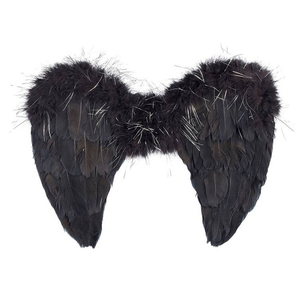 Czarne skrzydła Nyx holenderskiej marki Souza! wykonane zostały z kartonu i gęsich piór. Mają 29 cm wysokości. Zachwycają perfekcyjnymi detalami, m.in. futerkiem i srebrnymi nitkami w górnej części. Łatwe do zakładania i zdejmowania dzięki gumce przy pleckach. Stanowią idealny dodatek do kostiumu na bal przebierańców, Halloween czy Jasełka. Sprawdzi się także jako prezent.