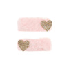 Komplet dwóch spinek do włosów z jasnoróżowym futerkiem Jolia holenderskiej marki Souza! Na pokrytych futerkiem ozdobach znajdują się brokatowe serduszka. Metalowe, ząbkowane zaciski sprawiają, że spinki stabilnie trzymają się włosów. Idealne zarówno na przyjęcia, jak i na co dzień. Nadają się także na prezent.