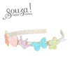 Opaska z kolorowymi brokatowymi elementami Carolina holenderskiej marki Souza! Obciągniętą perłową wstążką opaskę zdobi 5 aplikacji: pomarańczowa gwiazdka, jasnoróżowe serduszko, liliowa korona, turkusowy motyl i jasnozielony kwiatek. Opaska jest lekka, delikatna i przyjemna w noszeniu (ma optymalną szerokość – 1 cm – i nie uciska). Idealna zarówno na przyjęcia, jak i na co dzień. Sprawdzi się także jako stylowy prezent.