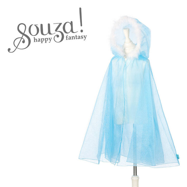 Kostium peleryna królowej śniegu z obszernym kapturem holenderskiej marki Souza! to przepiękne, kunsztownie wykonane przebranie dla dziewczynki. Peleryna zachwyca dbałością o detale. Jest efektowna, z dwóch warstw połyskującego niebieskiego tiulu, zwiewna i prześwitująca. Wokół kaptura obszyta białym, długowłosym futerkiem. Zapinana pod szyją na guziczki z pętelką – perełki. Komfortowa do noszenia. Idealna jako dodatek do stroju królowej śniegu, lodowej księżniczki czy zimowego elfa lub samodzielny kostium na bal przebierańców czy Sylwestra. Sprawdzi się także jako prezent.