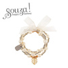 Bransoletka 3 w 1 Nessa holenderskiej marki Souza! składa się z trzech rzędów (15 cm) drobnych złotych i srebrnych koralików oraz większych białych pereł. Dodatkowo zdobi ją biała tiulowa kokardka i dwie zawieszki: złoty listek monstery i srebrna blaszka z logo marki. Biżuteria jest lekka, delikatna, nietoksyczna i nie podrażnia skóry. Idealna zarówno na przyjęcia, jak i na co dzień. Sprawdzi się także jako stylowy prezent.