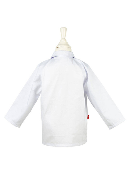 Kostium doktora holenderskiej marki Souza! to przepiękne, kunsztownie wykonane przebranie, w skład którego wchodzi zapinany na ukryte napy biały lekarski kitel z czerwoną naszywką szpitala na lewej piersi i kieszonką-okienkiem na prawej (np. na identyfikator ze zdjęciem). Na wysokości pasa ma kolejne dwie spore transparentne kieszenie na akcesoria. W zestawie znajduje się biała opaska na głowę, strzykawka, drewniany młoteczek neurologiczny, stetoskop z drewnianymi elementami oraz termometr. Całość jest łatwa do samodzielnego zakładania, komfortowa do noszenia i inspirująca do ciekawej zabawy. To idealny strój na bal przebierańców, przedstawienie, Sylwestra czy inne przyjęcie. Sprawdzi się także jako prezent.
