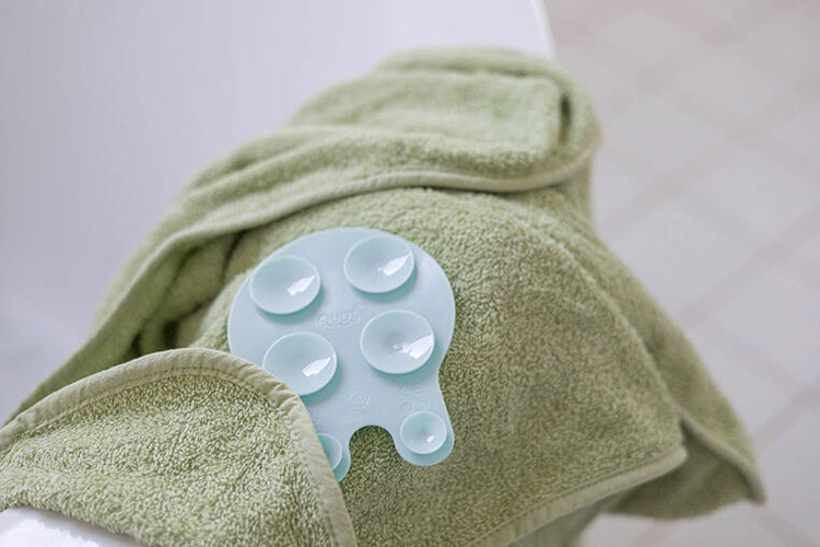 Przyssawki antypoślizgowe do wanny meduzy Grippi belgijskiej marki Quut to innowacyjna zabawka do kąpieli. Zadziwia pomysłowością, rozwija małą motorykę i kreatywność, przyciąga wzrok niebanalnym designem i kolorystyką, a przy tym zwiększa bezpieczeństwo malca w wannie. Komplet składa się z 16 winylowych meduz w 2 kształtach i 5 kolorach: żółtym, jasnoróżowym, koralowym oraz jaśniejszym i ciemniejszym odcieniu turkusu. Każda ma dużą głowę, po 2 krótkie wypustki i 6 mocnych przyssawek, dzięki którym przywiera do podłoża. Można z nich stworzyć antypoślizgową powierzchnię na dnie wanny i pod prysznicem (świetna alternatywa dla maty do kąpieli) lub na podłodze (rodzaj ścieżki sensorycznej), jak również bawić się nimi na łazienkowej ścianie. Idealnie nadają się również do zabaw w wodzie. Elementy są lekkie i szybkoschnące.