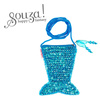 Torebka dla dzieci Merly holenderskiej marki Souza! ma kształt syreniego ogona i pokryta jest niebieskimi cekinami. Zapinana na suwak (z zawieszką z koralików i tiulu przy prowadniku), posiada długi (ok. 50 cm) miękki sznurek do przewieszenia przez ramię. Pomieści niezbędne drobiazgi. Idealna jako dodatek do stroju wizytowego, np. na przyjęcia, jak i do noszenia na co dzień. Nadaje się także na prezent.
