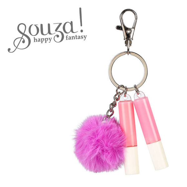 Breloczek z pomponem i błyszczykami dla dzieci holenderskiej marki Souza! Metalowy breloczek z fioletowym pomponem na łańcuszku i dwoma błyszczykami w kolorze różowym i brzoskwiniowym (po ok. 5 g każdy) zakończony jest karabińczykiem, dzięki czemu jest wygodny do zabrania ze sobą i przyczepienia np. do plecaka. Kosmetyki o smaku wanilii są w pełni bezpieczne, wykonane na bazie wody, nie uczulają i nie podrażniają skóry. Idealne na przyjęcia, urodzinki, zabawę w salon kosmetyczny czy jako prezent. Zestaw zapakowany jest w urocze kartonowe pudełko z okienkiem.