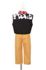 Kostium kowboj Chuck holenderskiej marki Souza! to przepiękne, kunsztownie wykonane przebranie, które składa się z długich jasnobrązowych spodni z gumką w pasie, imitującą skórzany pas z ćwiekami oraz czarnej kamizelki z brązowymi frędzlami na połach i ramionami z krowiej „skóry” oraz z gwiazdą szeryfa na lewej piersi. W komplecie jest także czerwona chusta apaszka we wzór paisley do zawiązania na szyi. Zestaw jest miękki, łatwy do samodzielnego zakładania i komfortowy do noszenia. To idealny strój na bal przebierańców, przedstawienie czy Sylwestra. Sprawdzi się także jako prezent.