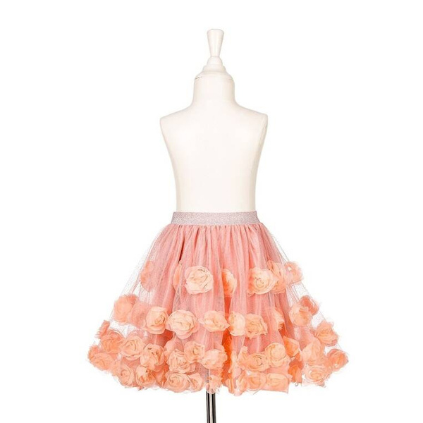 Kostium spódniczka tiulowa w róże Rosanna holenderskiej marki Souza! to przepiękne, kunsztownie wykonane przebranie dla dziewczynki. Ma klasyczny rozkloszowany krój, gumkę w pasie i srebrną, ozdobną taśmę wokół talii. Zachwyca dbałością o detale. Składa się z gładkiej podszewki i kilku warstw różowego tiulu z drobinkami srebrnego brokatu. Wierzchnią warstwę zdobią aplikacje z wielu materiałowych róż w odcieniu brzoskwiniowym. Spódniczka jest komfortowa do noszenia. To idealne ubranie na wszelkie przyjęcia, bale przebierańców czy Sylwestra. Sprawdzi się także jako prezent.