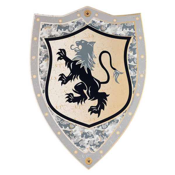 Tarcza rycerska Raymond holenderskiej marki Souza! jest wykonana z lekkiej i wytrzymałej pianki EVA, w srebrno-złotej, imitującej metal kolorystyce. Tarczę zdobi herb z czarnym lwem/gryfem i bogate zdobienia wokół. Wyposażona jest w dwa wygodne uchwyty. Całość jest lekka i komfortowa do noszenia. Stanowi idealny dodatek do kostiumu rycerza na przedstawienie lub bal przebierańców. Sprawdzi się także jako prezent.