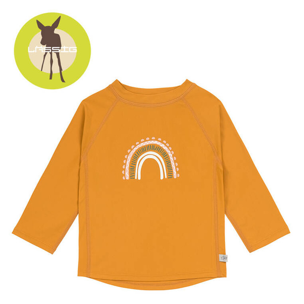Praktyczna i komfortowa koszulka do pływania z długim rękawem z kolekcji Splash & Fun niemieckiej marki LASSIG. Wykonana jest z miękkiego, przyjemnego do noszenia i szybkoschnącego materiału z filtrem UV 60. Idealna zarówno na basen, jak i na plażę, do nauki pływania, kąpieli w jeziorze czy morzu oraz wszelkich wodnych zabaw. Ma nieuwierające szwy. Dzięki zawartości elastanu w składzie, zapewnia swobodę ruchów i maksymalne dopasowanie. Łatwa w pielęgnacji. Wzór Rainbow (Tęcza) to trwały gumowy nadruk tęczy w odcieniach bieli, różu i złota na tle w kolorze ochry.