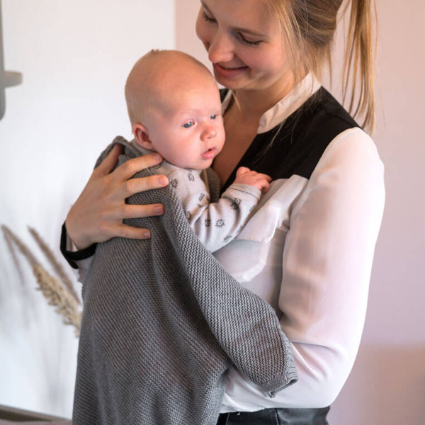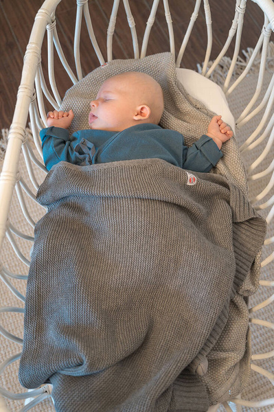 Dziergany kocyk niemowlęcy holenderskiej marki Lodger o wymiarach 80 x 100 cm. Może pełnić wiele zadań w zależności od bieżących potrzeb – może być używany np. do owijania maluszka, do okrycia podczas drzemki, do wózka i fotelika, do uspokajania i na wszelkie inne sposoby. Kocyk jest miękki, bardzo przyjemny w dotyku, przewiewny i delikatny. Wykonany z dzianiny bawełnianej ma prosty splot ze ściągaczem i grubość tog 1. Jest trwały i efektowny. Produkt łatwy w pielęgnacji: można go prać w pralce w temperaturze 40°C w delikatnym cyklu.