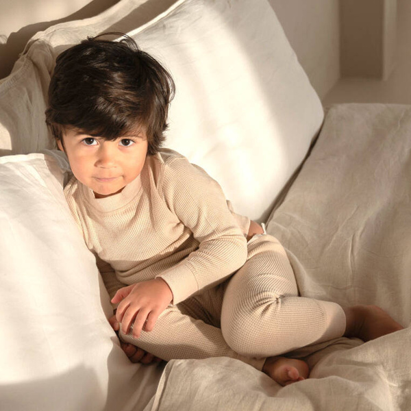 Dwuczęściowa piżamka holenderskiej marki Lodger, wykonana z dzianiny o waflowym splocie. Składa się z koszulki z długim rękawem i długich spodni. Leciutka, oddychająca, rozciągliwa i komfortowa. Idealna do spania i domowych aktywności, np. raczkowania. Wykonana w 100% z miękkiej bawełnianej dzianiny. Bezszwowy krój sprawia, że nie uciska skóry malucha i doskonale przylega do ciała. Jest łatwa do zakładania i zdejmowania. Do tego produktu możesz dobrać inny z tej samej kolekcji lub w tym samym kolorze. Produkt można prać w 60℃ w trybie delikatnym.