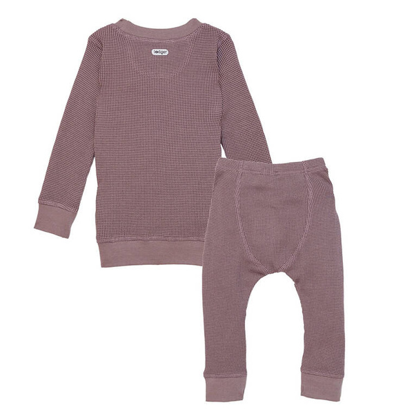 Dwuczęściowa piżamka holenderskiej marki Lodger, wykonana z dzianiny o waflowym splocie. Składa się z koszulki z długim rękawem i długich spodni. Leciutka, oddychająca, rozciągliwa i komfortowa. Idealna do spania i domowych aktywności, np. raczkowania. Wykonana w 100% z miękkiej bawełnianej dzianiny. Bezszwowy krój sprawia, że nie uciska skóry malucha i doskonale przylega do ciała. Jest łatwa do zakładania i zdejmowania. Do tego produktu możesz dobrać inny z tej samej kolekcji lub w tym samym kolorze. Produkt można prać w 60℃ w trybie delikatnym.