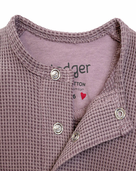 Pajacyk piżamka niemowlęca z dzianiny o splocie waflowym holenderskiej marki Lodger. Leciutka, oddychająca, rozciągliwa i komfortowa. Idealna do spania i domowych aktywności, np. raczkowania. Wykonana w 100% z miękkiej bawełnianej dzianiny. Bezszwowy krój sprawia, że nie uciska skóry malca, a prosty delikatne ściągacze przy stópkach – że dobrze się układa i doskonale przylega. Zatrzaski pod szyją i w kroku ułatwiają zakładanie ubranka i przewijanie noszącego je malucha. Do tego produktu możesz dobrać inny z tej samej kolekcji lub w tym samym kolorze. Produkt można prać w 60℃ w trybie delikatnym.