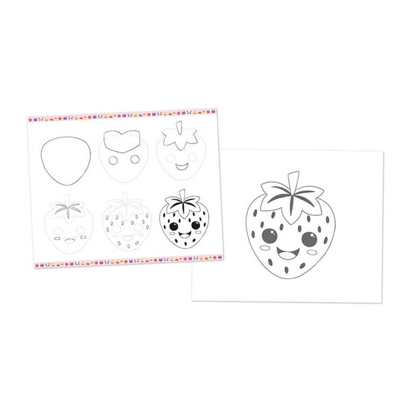 Zestaw kreatywny Rysowanie krok po kroku Modele kawaii francuskiej marki JANOD zawiera 20 plansz ze wzorami do odwzorowania krok po kroku, 25 pustych kartek, ołówek HB i gumkę do zmazywania. Rysunki do odtworzenia przedstawiają urocze postacie lub rzeczy w japońskim stylu, tj. z dużymi oczami lub słodkim uśmiechem. Nauka rysunku krok po kroku to wiele godzin angażującej i jednocześnie uspokajającej, wyciszającej zabawy, a gotowe obrazki staną się wspaniałą dekoracją dziecięcego pokoju i powodem do dumy dla małych artystów.