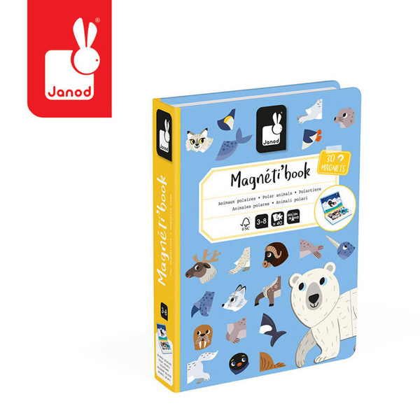 Magnetibook Zwierzęta polarne z bestsellerowej linii Magnetibook francuskiej marki Janod zawiera 30 magnesów, które stanowią części składowe do stworzenia m.in. białego niedźwiedzia, pingwina, renifera, foki, lwa morskiego i innych stworzeń, żyjących na biegunach oraz 10 kart z ilustracjami, na których można się wzorować przy ich kreowaniu. Magnesy pozwalają również na układanie wymyślonych przez siebie gatunków oraz opowieści, których są bohaterami. To świetna rozrywka dla wszystkich twórczych dzieci.