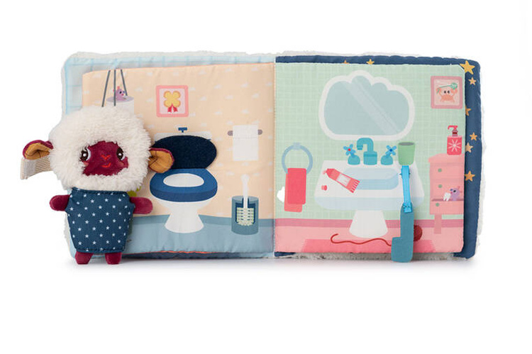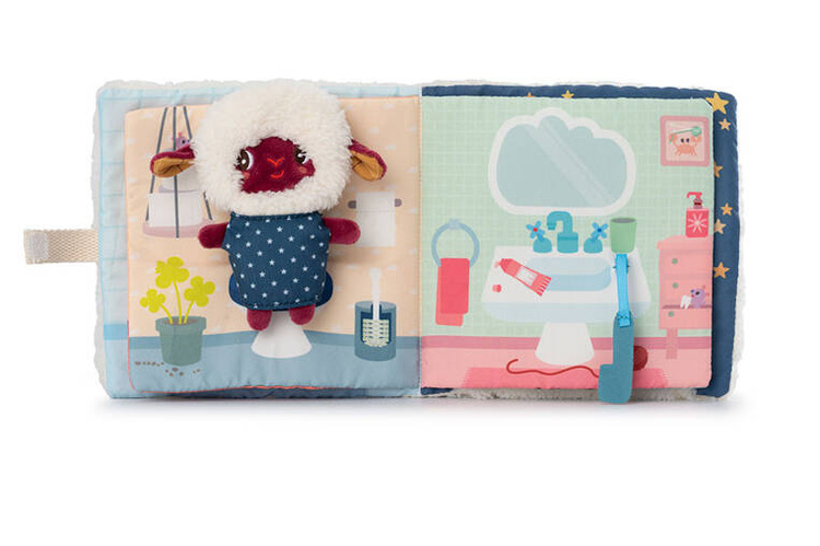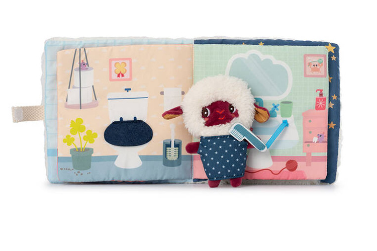 Książeczka Dobranoc z kolekcji Owieczka Yvon belgijskiej marki Lilliputiens to idealna pierwsza lektura dla maluszka. Na okładce znajduje się zagroda z kieszonką, w której można umieścić dołączoną do książeczki mini-przytulankę – futerkową Owieczkę Yvon w zdejmowanej piżamce. Ponadto okładka szeleści przy pocieraniu. Każda ze stron książeczki przedstawia inną sytuację związaną z przygotowaniami do snu, m.in.: kąpiel, toaletę, mycie zębów czy przytulas od mamy. Książeczkę uatrakcyjniają kieszonki, okienka, wystające i odczepiane na rzep elementy. Kolorowe obrazki doskonale nadają się do snucia opowieści i łatwo zapadają w pamięć. Książeczka jest zapinana na rzep, perfekcyjnie wykończona, z dbałością o każdy szczegół i w pełni bezpieczna dla dziecka. Pobudza dziecięcą wyobraźnię i ciekawość, aktywizuje zmysły wzroku, dotyku i słuchu. Jest także świetnym sposobem na zaszczepienie w maluszku miłości do książek oraz oswojenia go z rutyną dobrego snu.