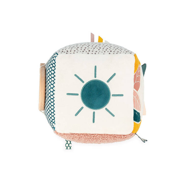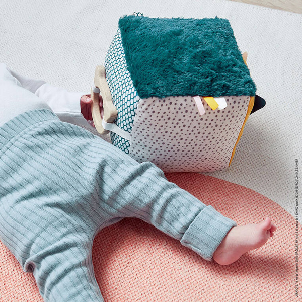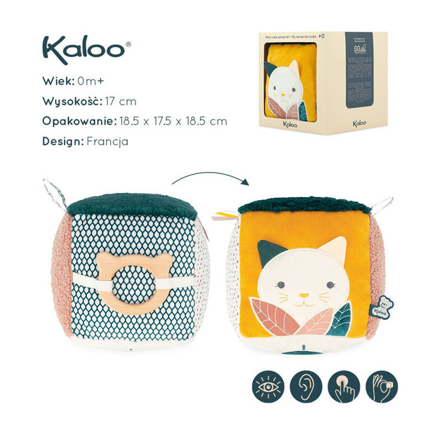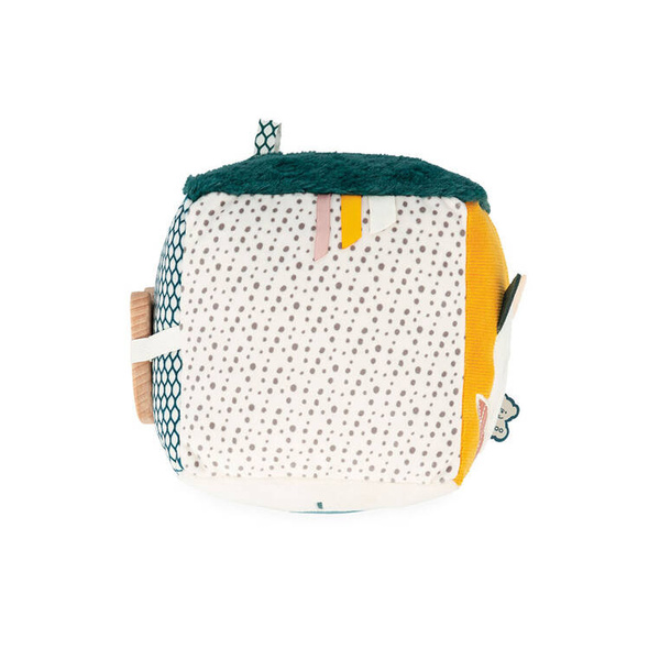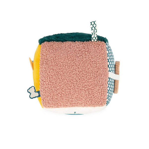 Miękka kostka sensoryczna z kolekcji Stimuli francuskiej marki KALOO to idealna, wielofunkcyjna zabawka rozwojowa dla Twojego dziecka, bezpieczna już od pierwszych dni życia. Jest piękna i perfekcyjnie wykończona. Ma poręczny rozmiar, jej ścianki zostały wykonane każda z innej tkaniny (m. in. pętelkowego futerka), zróżnicowanej, fakturowanej, a przy tym przyjemnej w dotyku, dzięki czemu wspaniale stymulują zmysły. Różne kolory i naszyte wzory pobudzają wzrok, a odstające detale i drewniany gryzaczek – wspierają naukę chwytu i przynoszą ulgę w trudnym okresie ząbkowania.