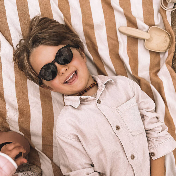 Okulary przeciwsłoneczne francuskiej marki BEABA przeznaczone są dla dzieci powyżej 4. roku życia Zaprojektowane z naciskiem na praktyczność, bezpieczeństwo i wygodę użytkowania, a przede wszystkim ochronę oczu malucha. Antypoślizgowe, zakrzywione ramiona nie uciskają głowy dziecka, są dobrze dopasowane i pozostają na miejscu, również podczas typowych dziecięcych aktywności. Strefa nosa i skroni wykonana została w technologii Fit z elastycznego, trwałego tworzywa, które dopasowuje się do kształtu twarzy. Szczególny, obły kształt oprawek zabezpiecza oczy malucha przed promieniami słonecznymi wpadającymi również z boku. Specjalne, nietłukące się „szkiełka” to ciemne soczewki kategorii 3, tj. gwarantujące maksymalną, 100% ochronę przed promieniami UV. Nadają się do ekspozycji na słońce również na plaży czy w górach. Okulary posiadają regulowane zauszniki 360° oraz elastyczną opaskę, którą można w razie potrzeby zamocować na klik (dzięki silikonowym zaczepom) dla optymalnego komfortu.