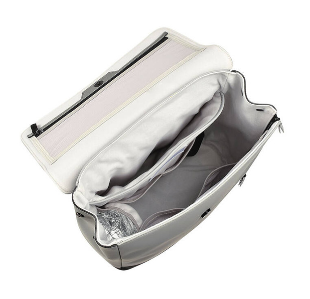 – komora główna z klapką na magnes, liczne wewnętrzne i zewnętrzne przegródki (łącznie 11), w tym 2 na suwak i 7 z elastycznymi brzegami (jedna termoizolacyjna),