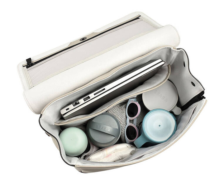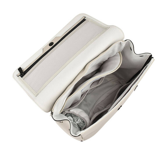 Bardzo praktyczny, wygodny, oszczędny w formie i lekki plecak unisex dla rodziców francuskiej marki BEABA. Stworzony z myślą o współczesnych rodzicach – miejskich nomadach, którzy chcą aktywnie odkrywać świat razem ze swoim dzieckiem. Plecak bez trudu pomieści wszystkie niezbędne akcesoria zarówno dziecka, jak i rodzica. Posiada łącznie 11 praktycznych kieszeni, w tym termoizolacyjną na gumkę np. na ciepłe posiłki oraz przegrodę mieszczącą laptopa o rozmiarze 17”. Dodatkowy suwak biegnący wzdłuż boku plecaka umożliwia szybki dostęp do komory głównej. Plecak utrzymany jest w klasycznej, kontrastowej kolorystyce (jasny beż + czerń), posiada miłą w dotyku podszewkę, szerokie komfortowe pasy do noszenia na ramionach oraz uniwersalne uchwyty do zamocowania go na ramie wózka.