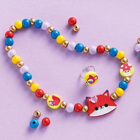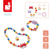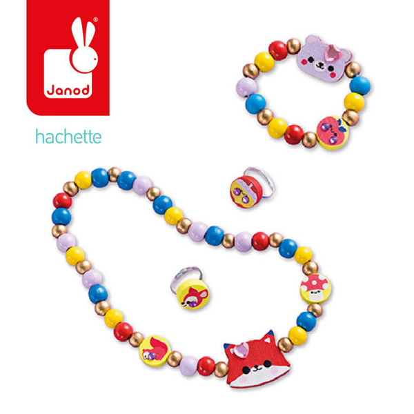 Zestaw do tworzenia biżuterii Piękny las francuskiej marki JANOD pozwoli stworzyć łącznie 4 sztuki biżuterii – bransoletkę, naszyjnik i dwa pierścionki z drewnianych koralików. W jego skład wchodzi elastyczny sznurek do nawlekania elementów, dwie duże główki – liska i misia, 3 mniejsze okrągłe elementy z leśnymi grafikami na żółtym tle, 33 kolorowe i 22 złote drewniane koraliki, 2 regulowane pierścionki i arkusik z naklejkami. Do zestawu dołączona jest szczegółowa instrukcja jak krok po kroku wykonać poszczególne ozdoby. Dzięki niej w kilka chwil Twoje dziecko może stać się kreatywnym jubilerem! Projektowanie i tworzenie biżuterii to długie godziny angażującej i jednocześnie uspokajającej, wyciszającej zabawy, a po skończonej pracy powstałe dzieła mogą jeszcze długo służyć jako ozdoby lub podarunki dla bliskich.