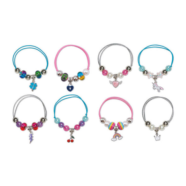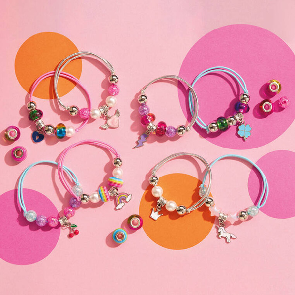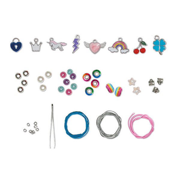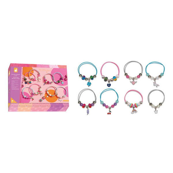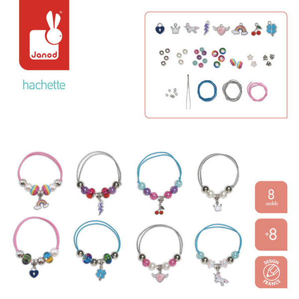 Zestaw do tworzenia biżuterii Bransoletki szczęścia francuskiej marki JANOD pozwoli stworzyć łącznie 8 sztuk biżuterii – kolorowych bransoletek ze sznureczków, koralików i metalowych zawieszek. W jego skład wchodzą nici w 3 kolorach, różnego rodzaju koraliki, 8 pojedynczych zawieszek z metalu, m. in. piorun, wisienki czy czterolistna koniczynka, srebrne kółeczka oraz szczypce do chwytania drobnych elementów. Do zestawu dołączona jest szczegółowa instrukcja jak krok po kroku wykonać poszczególne ozdoby. Dzięki niej w kilka chwil Twoje dziecko może stać się kreatywnym jubilerem! Projektowanie i tworzenie biżuterii to długie godziny angażującej i jednocześnie uspokajającej, wyciszającej zabawy, a po skończonej pracy powstałe dzieła mogą jeszcze długo służyć jako ozdoby lub podarunki dla bliskich.