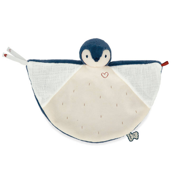 Uroczy komforter Pingwinek z kolekcji Complices francuskiej marki KALOO to idealny pierwszy mini-przyjaciel Twojego maluszka, który przy okazji niesie ważne przesłanie na temat bliskich więzi. Jest miękki, piękny, perfekcyjnie wykończony i przede wszystkim całkowicie bezpieczny dla dziecka już od pierwszych dni jego życia. Uszyty z trzech rodzajów przyjemnych w dotyku tkanin w odcieniach bieli i koloru niebieskiego: futerka, aksamitnego sztruksu i muślinu. Muślinowa część posiada właściwość absorbowania zapachów, dzięki czemu dziecko może „czuć” rodzica, nawet gdy ten nie jest akurat przy nim. Oba końce komfortera można związać ze sobą uroczymi tasiemkami z wyhaftowanym serduszkiem – symbolem bliskości. Zabawka jest stworzona do tulenia, usypiania, uspokajania, zabierania na spacery i na dłuższe wyprawy. Ma ułatwiać maleństwu okresy separacji z rodzicem i wspierać go w budowaniu bezpiecznych więzi.