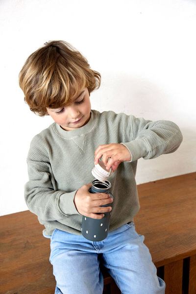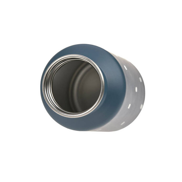 Solidny bidon ze stali nierdzewnej niemieckiej marki LASSIG przyda się nie tylko do szkoły, ale również podczas rodzinnych spacerów i wycieczek. Ma pojemność 500 ml, jest lekki, szczelny i bardzo wytrzymały. Doskonały do chłodnych, niegazowanych napojów. To idealne rozwiązanie na wszelkie wyjazdy oraz aktywności na dworze. Odkręcana pokrywka posiada silikonową uszczelkę i poręczny stalowy uchwyt. Do zestawu dołączona jest też druga pokrywka z gwintem, wygodnym ustnikiem i rączką z tworzywa. Bidon jest łatwy w obsłudze i ma ergonomiczny kształt – z łatwością zmieści się do małego plecaka, torebki czy bocznej kieszonki. Ma granatowy kolor w urocze białe ciapki.