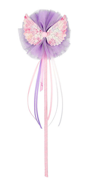 Różdżka z tiulowym pomponem i mini-skrzydełkami Guusje holenderskiej marki Souza! obciągnięta jest jasnoróżową wstążką. U góry zdobi ją kilka satynowych wstążek i spory tiulowy pompon w kolorze fioletowym, do którego zamocowane są różowe brokatowe mini-skrzydełka z mini-pomponikiem w środku. Ma 35 cm długości, jest poręczna i lekka. Stanowi idealny dodatek do kostiumu wróżki lub księżniczki. Sprawdzi się także jako prezent.