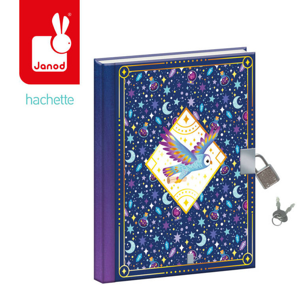 Zestaw kreatywny Sekretny notes Szkoła magii francuskiej marki JANOD zawiera 96-stronnicowy notatnik z kłódką i dwoma kluczykami. Połyskującą ciemnogranatową okładkę notesu zdobi lecąca sowa, a kartki w nim są fioletowe W zestawie znajduje się ponadto arkusz magicznych naklejek i fioletowy długopis w kształcie pióra. Notatnik może stać się sekretnym pamiętnikiem, miejscem na ważne zapiski czy szkicownikiem. Robienie zapisków to zajęcie angażujące i jednocześnie uspokajające, wyciszające. Zestaw zaprojektowano we Francji we współpracy z francuską grupą mediową i wydawniczą Hachette. Zapakowany jest w urokliwe kartonowe pudełko. Idealnie nadaje się na prezent.