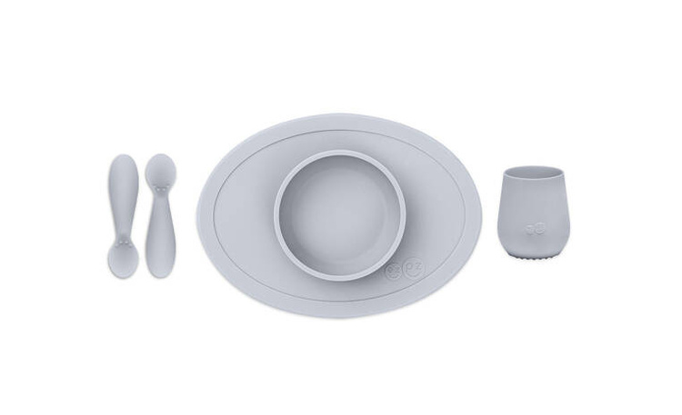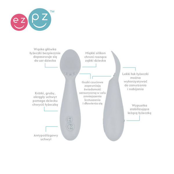 Komplet First Foods Set amerykańskiej marki EZPZ (czyt. izipizi) to idealny pierwszy zestaw naczyń dla Twojego dziecka, stworzony z wyjątkowego silikonu. Został on zaprojektowany przez specjalistę w dziedzinie logopedii i żywienia dzieci, dzięki czemu jego wielkość i kształt jest idealnie dopasowany do ust i potrzeb małego dziecka. Te innowacyjne naczynia zostały zaprojektowane tak, aby ułatwić maluszkowi naukę samodzielnego jedzenia i picia. Dodatkowo poszczególne elementy zestawu wspierają rozwój aparatu mowy i małej motoryki u dziecka. Przeznaczone są dla dzieci od 4. - 6. miesiąca życia (w zależności od zaleceń lekarza pediatry kiedy najlepiej zacząć rozszerzanie diety dziecka). W skład zestawu wchodzą: malutka miseczka z podkładką, kubeczek i 2 łyżeczki.