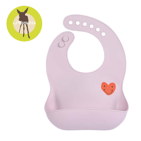 Śliniak silikonowy z kieszonką niemieckiej marki LASSIG. Stworzony z najbezpieczniejszego silikonu, giętki, hipoalergiczny i wyjątkowo odporny na zniszczenia (nie rysuje się i nie przebarwia). U dołu, na całej szerokości zakończony jest wyprofilowanym, głębokim korytkiem na spadające jedzenie. Proste zapięcie z regulowaną szerokością nie uwiera i nie krępuje ruchów dziecka, a przy tym utrzymuje śliniak we właściwym miejscu. Ma estetyczny design. Jest jasno lawendowy z czerwoną grafiką – uśmiechniętym serduszkiem. Odpowiedni od 6. miesiąca życia. Stanowi część większej kolekcji Happy Rascals. Możesz dobrać do niego inny produkt w tej samej gamie kolorystycznej lub z tym samym motywem.