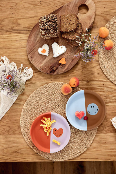 Uroczy okrągły talerzyk silikonowy niemieckiej marki LASSIG. Stworzony z najbezpieczniejszego silikonu, giętki, praktyczny, hipoalergiczny i wyjątkowo odporny na zniszczenia (nie rysuje się i nie przebarwia). Dobrze przywiera do każdej gładkiej powierzchni, na której go położysz. Jest lekki i stabilny. Ma estetyczny i atrakcyjny dla malucha wygląd: w połowie czerwony, w drugiej – jasno lawendowy z czerwoną grafiką – uśmiechniętym serduszkiem. Wyższe brzegi naczynia ułatwiają nabieranie pokarmów, co wspiera rozwój samodzielności dziecka. Odpowiedni już od 6. miesiąca życia. Stanowi część większej kolekcji Happy Rascals. Możesz dobrać do niego inny produkt w tej samej gamie kolorystycznej lub z tym samym motywem.