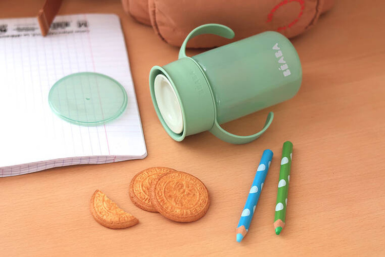 Poręczny i lekki kubeczek treningowy 360° francuskiej marki BEABA to praktyczne naczynie do nauki samodzielnego picia. System 360° umożliwia picie z dowolnej strony (jak ze szklanki), a prosty mechanizm docisku ust sprawia, że płyn wypływa tylko wtedy, gdy dziecko przyciska ustami dysk znajdujący się na środku, co zapobiega również rozlewaniu. Kubeczek ma pojemność 340 ml. Posiada zdejmowany ergonomiczny uchwyt – dwie zaokrąglone boczne rączki, wygodne do trzymania dla małych dzieci oraz dodatkową pokrywkę ułatwiającą utrzymanie higieny.