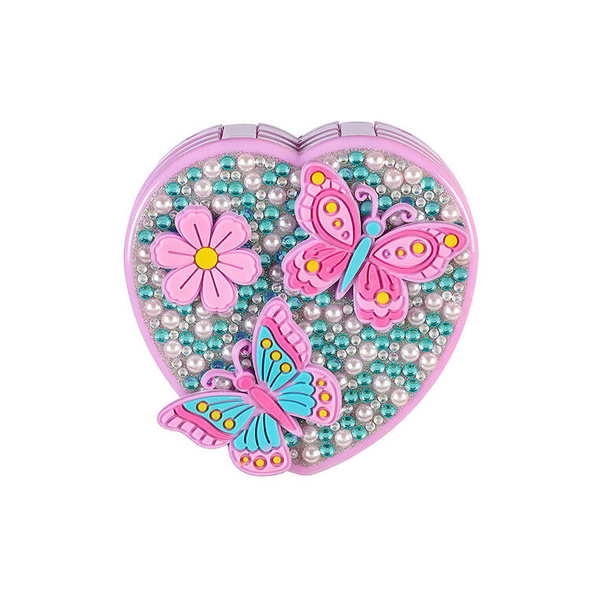 Rozkładana kasetka z lusterkiem i kosmetykami dla dzieci Serce holenderskiej marki Souza! Zawiera: 9 cieni do powiek w pięknych kolorach, błyszczyki do ust w kilku odcieniach różu oraz róż do policzków. W zestawie znajduje się też aplikator. Błyszczyk ma słodki waniliowy smak. Kosmetyki zostały stworzone na bazie naturalnych minerałów. Podstawowe składniki są przetestowane dermatologicznie, w pełni bezpieczne, nie uczulają i nie podrażniają skóry. Łatwo się je zmywa ciepłą wodą z mydłem. Idealne na przyjęcia, urodzinki, zabawę w salon kosmetyczny oraz jako stylowy prezent. Kasetka w kształcie serca rozkłada się na boki, a jej wieczko zdobią perełki, motylki i kwiatek. Całość zapakowana jest w urocze kartonowe pudełko z okienkiem.