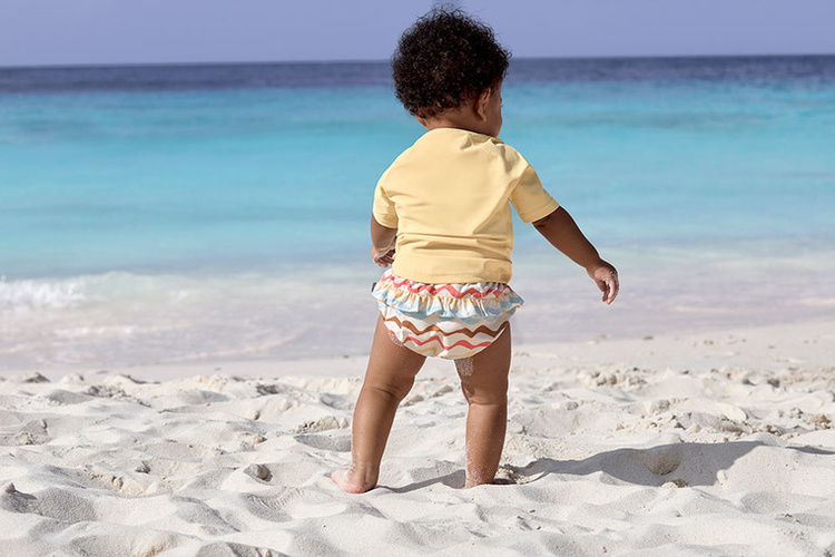 Kolekcja Splash & Fun to seria produktów, przeznaczonych do kąpieli i spędzania dnia na plaży czy basenie. Wszystkie elementy garderoby – pieluszki, szorty, koszulki czy nakrycia głowy – są szybkoschnące i doskonale chronią delikatną skórę dziecka przed promieniowaniem UV. Dodatkowo są komfortowe w noszeniu i użytkowaniu oraz wyróżniają się niebanalną kolorystyką.