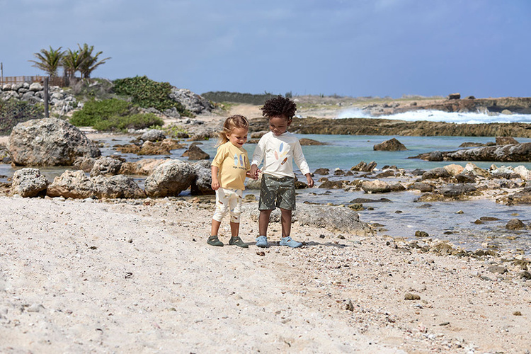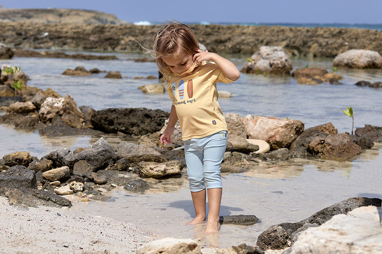 Kolekcja Splash & Fun to seria produktów, przeznaczonych do kąpieli i spędzania dnia na plaży czy basenie. Wszystkie elementy garderoby – pieluszki, szorty, koszulki czy nakrycia głowy – są szybkoschnące i doskonale chronią delikatną skórę dziecka przed promieniowaniem UV. Dodatkowo są komfortowe w noszeniu i użytkowaniu oraz wyróżniają się niebanalną kolorystyką.