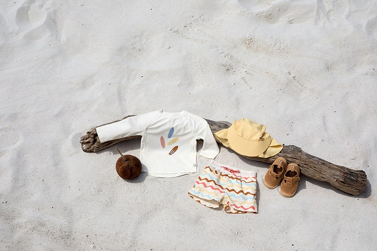 Kolekcja Splash & Fun to seria produktów, przeznaczonych do kąpieli i spędzania dnia na plaży czy basenie. Wszystkie elementy garderoby – pieluszki, szorty, koszulki czy nakrycia głowy – są szybkoschnące i doskonale chronią delikatną skórę dziecka przed promieniowaniem UV. Dodatkowo są komfortowe w noszeniu i użytkowaniu oraz wyróżniają się niebanalną kolorystyką.