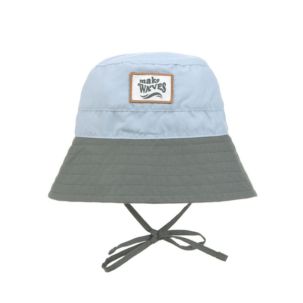 Jasnoniebieski (góra) i oliwkowy (rondo) z naszywką z napisem „make waves”. Produkt jest częścią większej kolekcji. Możesz dobrać do niego inny z tym samym wzorem lub w podobnej kolorystyce.