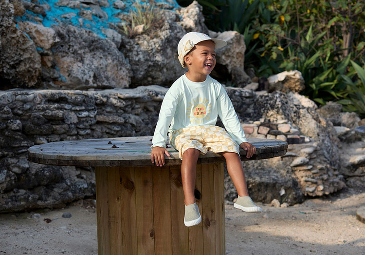 Kolekcja Splash & Fun to seria produktów, przeznaczonych do kąpieli i spędzania dnia na plaży czy basenie. Wszystkie elementy garderoby – pieluszki, szorty, koszulki czy nakrycia głowy – są szybkoschnące i doskonale chronią delikatną skórę dziecka przed promieniowaniem UV. Dodatkowo są komfortowe w noszeniu i użytkowaniu oraz wyróżniają się niebanalną kolorystyką.