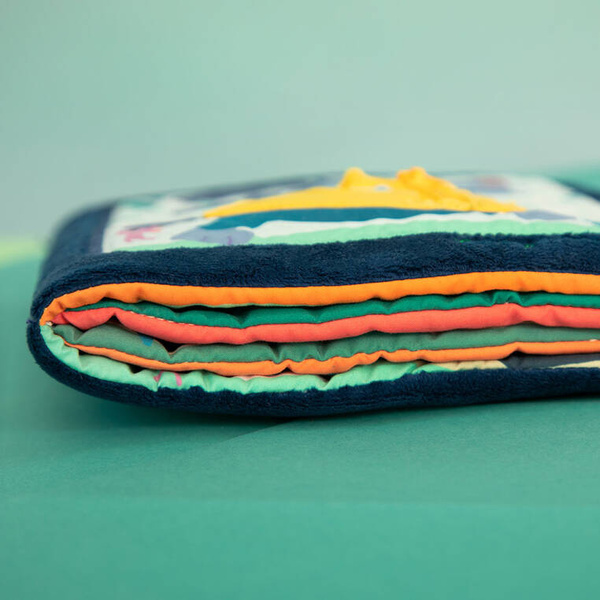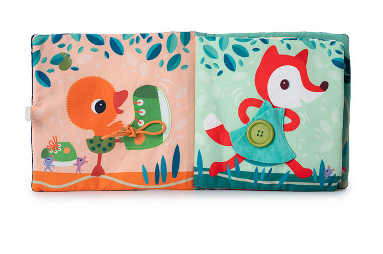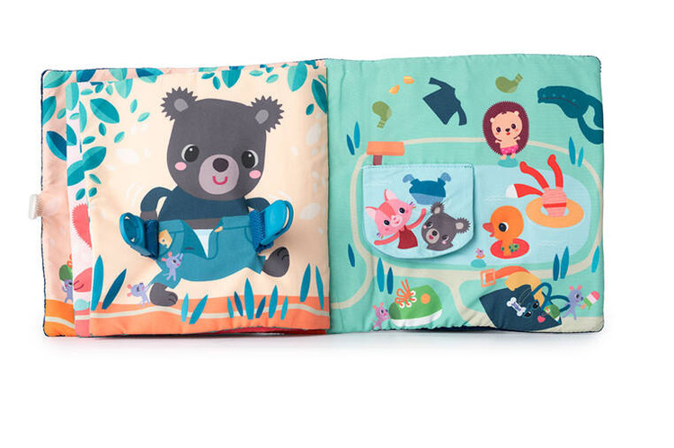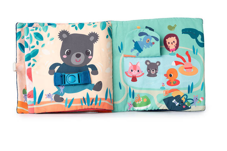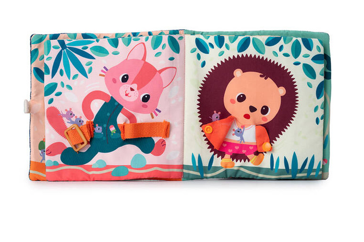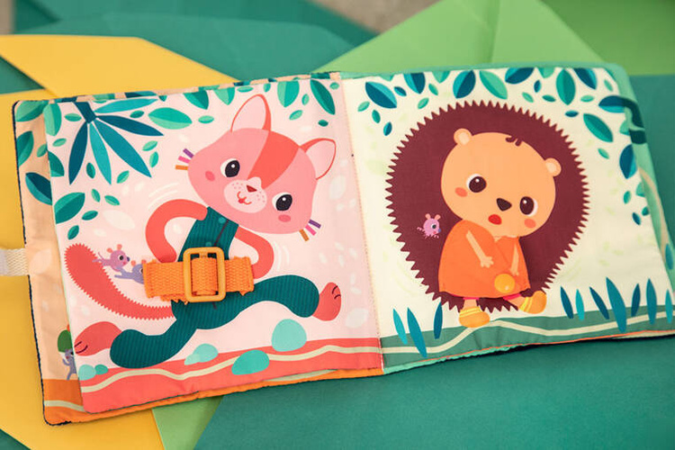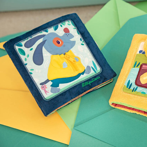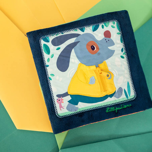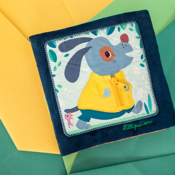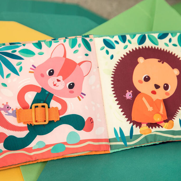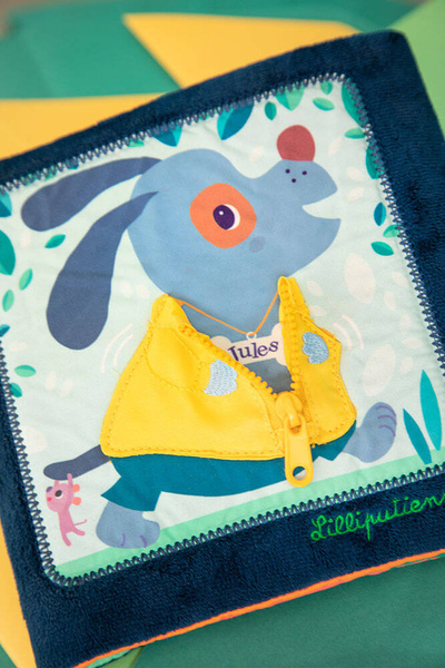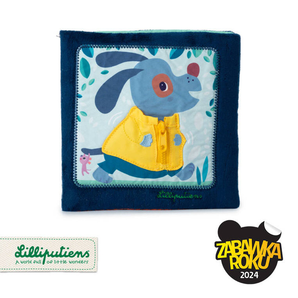 Książeczka „Uczę się sam ubierać” z kolekcji Piesek Jules belgijskiej marki Lilliputiens to idealna pierwsza lektura dla maluszka. Na okładce znajduje się radosny Piesek Jules w żółtej kurteczce, a na kolejnych stronach – jego przyjaciele. Każde ze zwierzątek ma na sobie ubranko, które można w jakiś sposób rozpiąć – jedno jest na suwak, inne na guzik, inne sznurowane, zapinane na nap, na zatrzask lub pasek zaciskowy. Tym samy maluch uczy się radzić sobie z różnymi rodzajami zapięć. Na końcu książeczki wszystkie stworzenia biorą kąpiel w basenie. Barwne postacie i rozwiązania doskonale nadają się do snucia opowieści i trenowania małej motoryki, opanowywania elementów ubioru i zdobywania samodzielności. Książeczka jest zapinana na rzep, perfekcyjnie wykończona, z dbałością o szczegół i w pełni bezpieczna dla dziecka. Pobudza dziecięcą wyobraźnię i ciekawość, aktywizuje zmysły. Jest także świetnym sposobem na zaszczepienie w maluszku miłości do książek oraz oswojenia go z wyzwaniami samodzielnego ubierania.