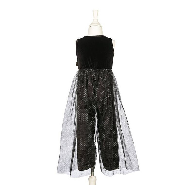 Kostium spodnium z tiulem Bella marki Souza! to przepiękne, kunsztownie wykonane przebranie dla dziewczynki. Ma klasyczny krój kombinezonu z górą na szerokich ramiączkach i z dekoltem w serek. Z przodu ma suwak, posiada także gumkę w pasie. Jest miękki i zachwyca dbałością o detale. Góra uszyta jest z czarnego aksamitu z cekinowym frontem i ciemnoniebieską metaliczną lamówką. Czarny dół – spodnie z szerokimi nogawkami – mają wzór w drobne kropeczki i jeszcze szerszą wierzchnią warstwę z tiulu. Spodnium jest przyjemne w dotyku i komfortowe do noszenia. Idealne jako kostium na bal przebierańców, Halloween czy Sylwestra. Sprawdzi się także jako prezent.
