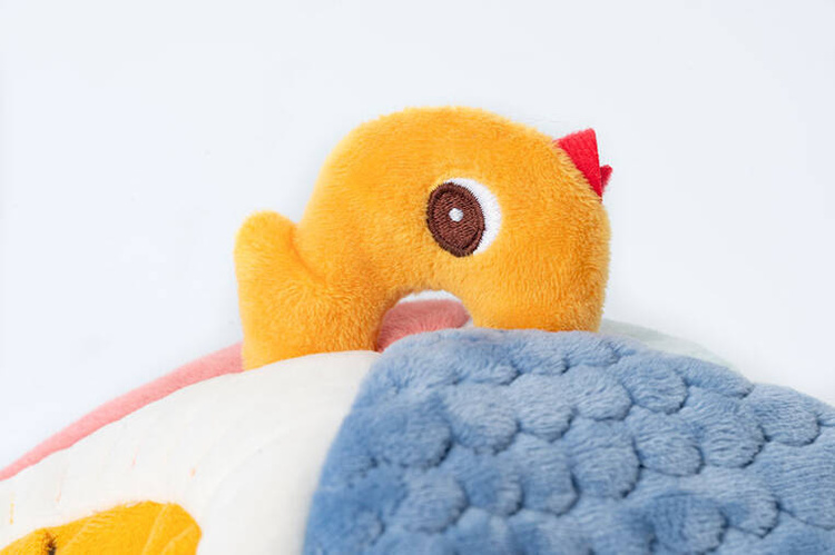 Domek oraz dołączeni do niego bohaterowie zostały uszyte z materiałów o różnych fakturach. Zabawka jest solidnie wykonana i w pełni bezpieczna. Zaskakuje i pobudza dziecięcą wyobraźnię. Rozwija koordynację ręka-oko oraz małą motorykę (chwytanie, wkładanie, wyciąganie, potrząsanie), aktywizuje zmysł słuchu (dźwięki) i dotyku (różne wypustki i tkaniny).